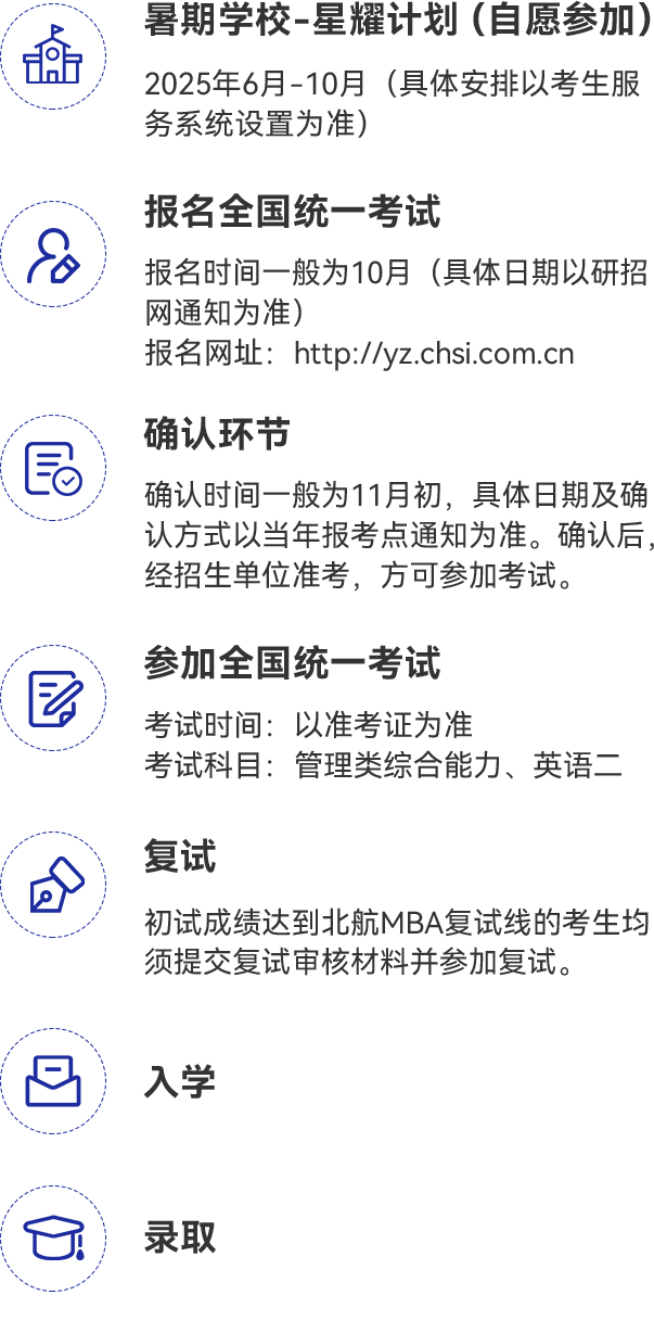 声明:2026年北航MBA招生政策最终以我校及我院当年硕士研究生招生简章及复试录取工作方案为准。如上级部门出台新政策,北航MBA教育中心将做出相应调整。如有变化,请以后续通知为准。我校从未委托任何机构或个人以北航MBA教育中心名义进行招生工作,相关信息请您关注北航MBA官网及微信公众号。